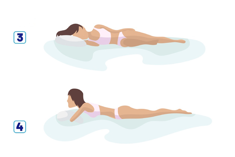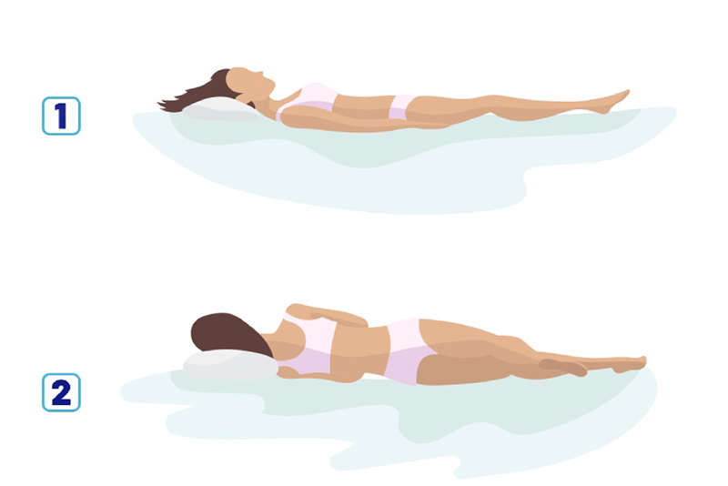 - Bước 1: Xoay đầu sang phải 45 độ, sau đó nằm xuống.