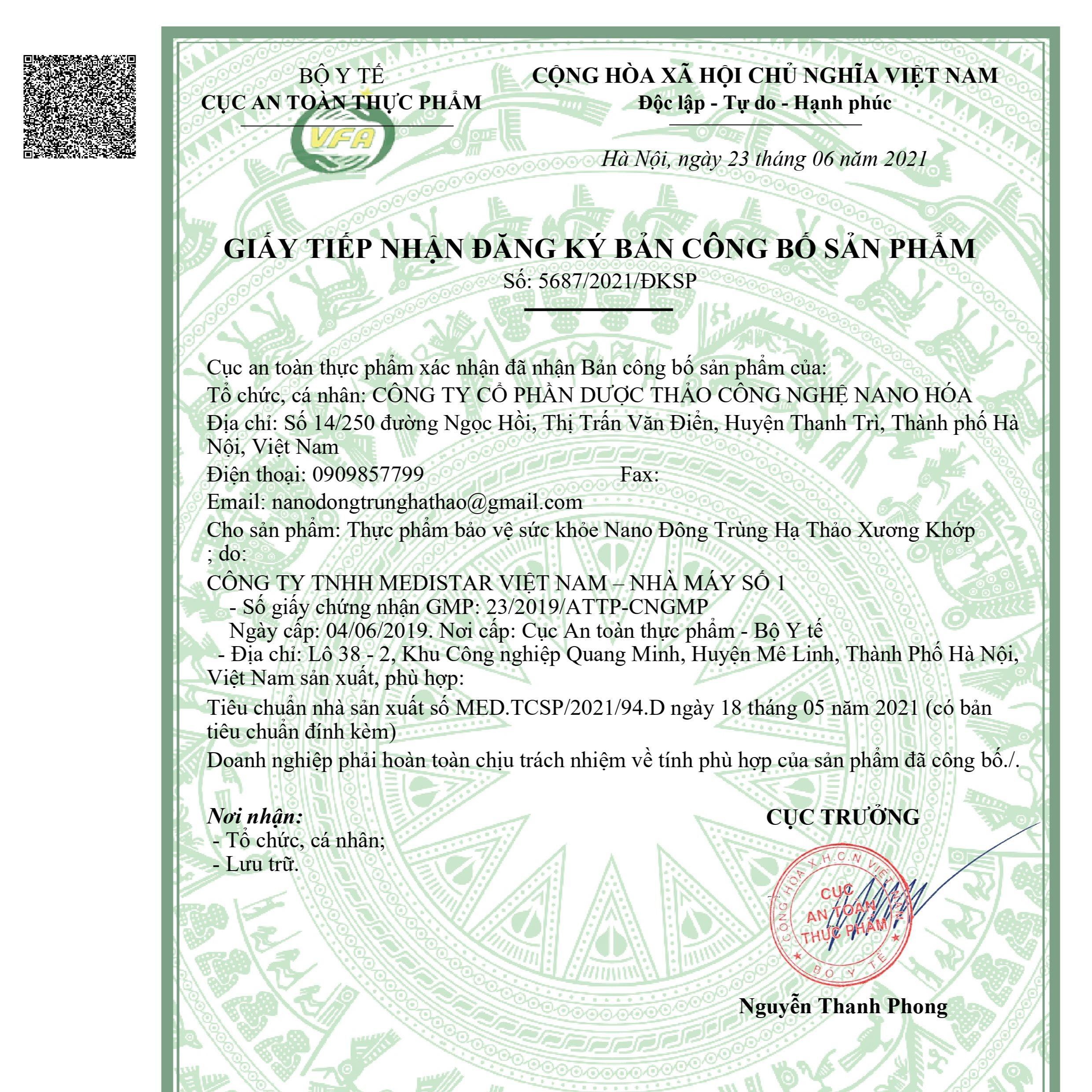 Nano đông trùng hạ thảo XK là sản phẩm của công ty Cổ phần công nghệ Thiên Dược