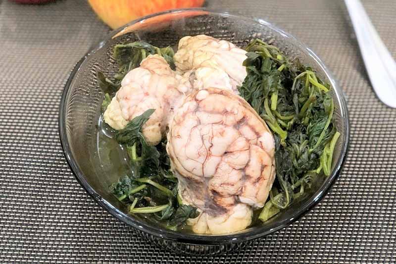 - Bước 1: Chuẩn bị 1-2 bộ óc heo, loại bỏ hết các mạch máu và rửa qua với nước muối loãng.